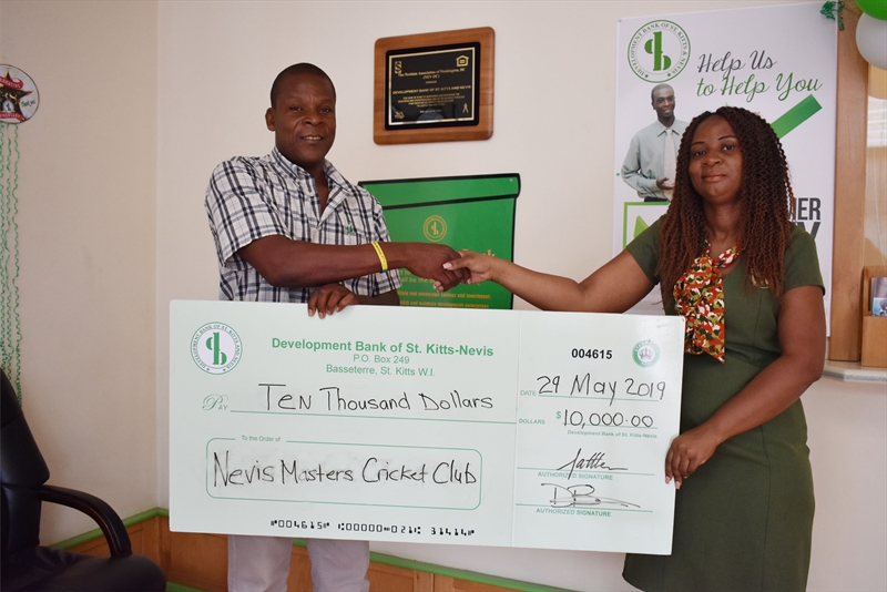 Mr Daniel was back at the Nevis Branch of the Development Bank of St. Kitts and Nevis on Wednesday May 29 to collect a sponsorship cheque from the bank, as the champion team will be leaving for Antigua on Thursday June 6 to defend the title at this year’s Leeward Islands Masters Cricket Tournament which takes place from Friday June 7 to Sunday June 9, 2019.