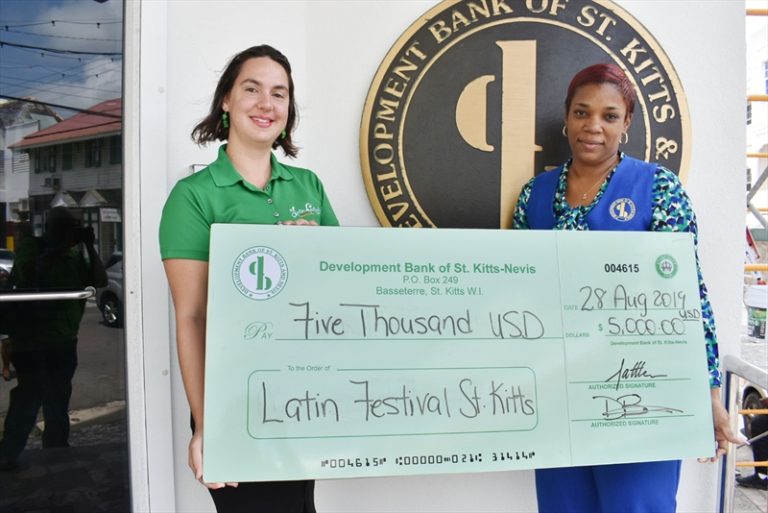‘Towards the end of August this year the Development Bank of St. Kitts and Nevis handed over our sponsorship cheque for this year’s events which start in earnest next week on Monday October 21, climaxing with the Latin Fiesta on Saturday October 26 at the Frigate Bay Lawns,’ observed Ms Evelyn-Maynard. ‘Be entertained and also educated by attending at least one, if not all of the events organised by Latin Festival St. Kitts.’